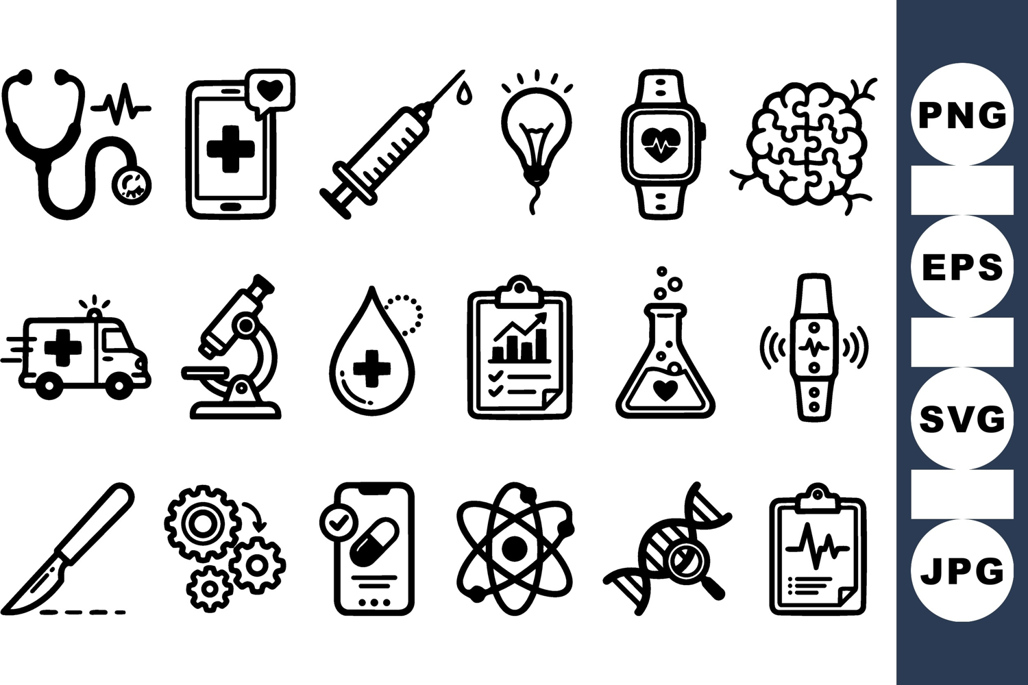 Medical Icon Set Dna Strand Illustration Hospital Clipart Set Doctor Tools Bundle Healthcare Icon Pack Medical Syringe Icons Ambulance Vector Graphics Laboratory Icon Collection Health Pulse Icons Clinic Equipment Pack