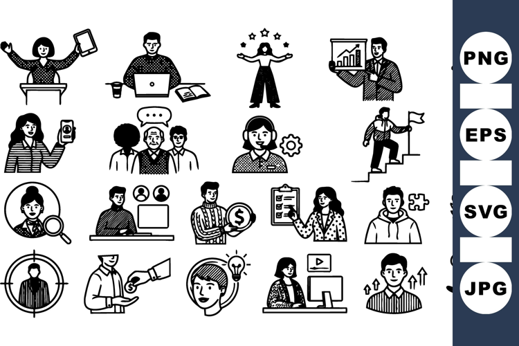 Management Icon Set Goal Achievement Icons Corporate Meeting Icons Business People Icons Business Growth Illustrations Customer Support Graphics Team Collaboration Graphics Professional Team Vector Office Worker Illustrations Workplace Communication Vector