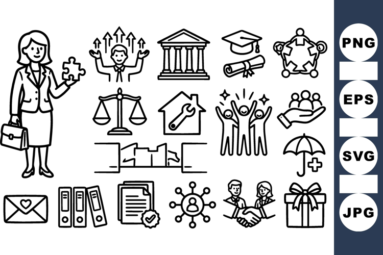 Business Icon Set Teamwork Vector Pack Office Document Illustrations Corporate Success Symbols Legal Office Icons Business Growth Images Career Planning Graphics Business Management Clipart Corporate Partnership Symbols Workplace Achievement Icons