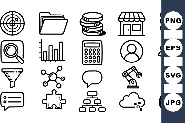 Business Icon Set Line Art Icons Data Analysis Clipart Communication Icon Kit Marketing Svg Bundle Digital Workflow Graphics Office Business Icons Technology Icon Collection Financial Svg Pack Automation Graphics Set
