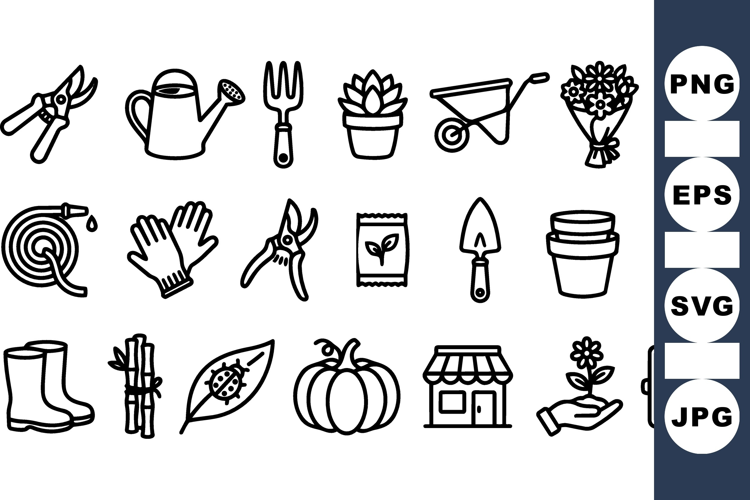 Line Art Gardening Tool Icons Bundle Set example image 1