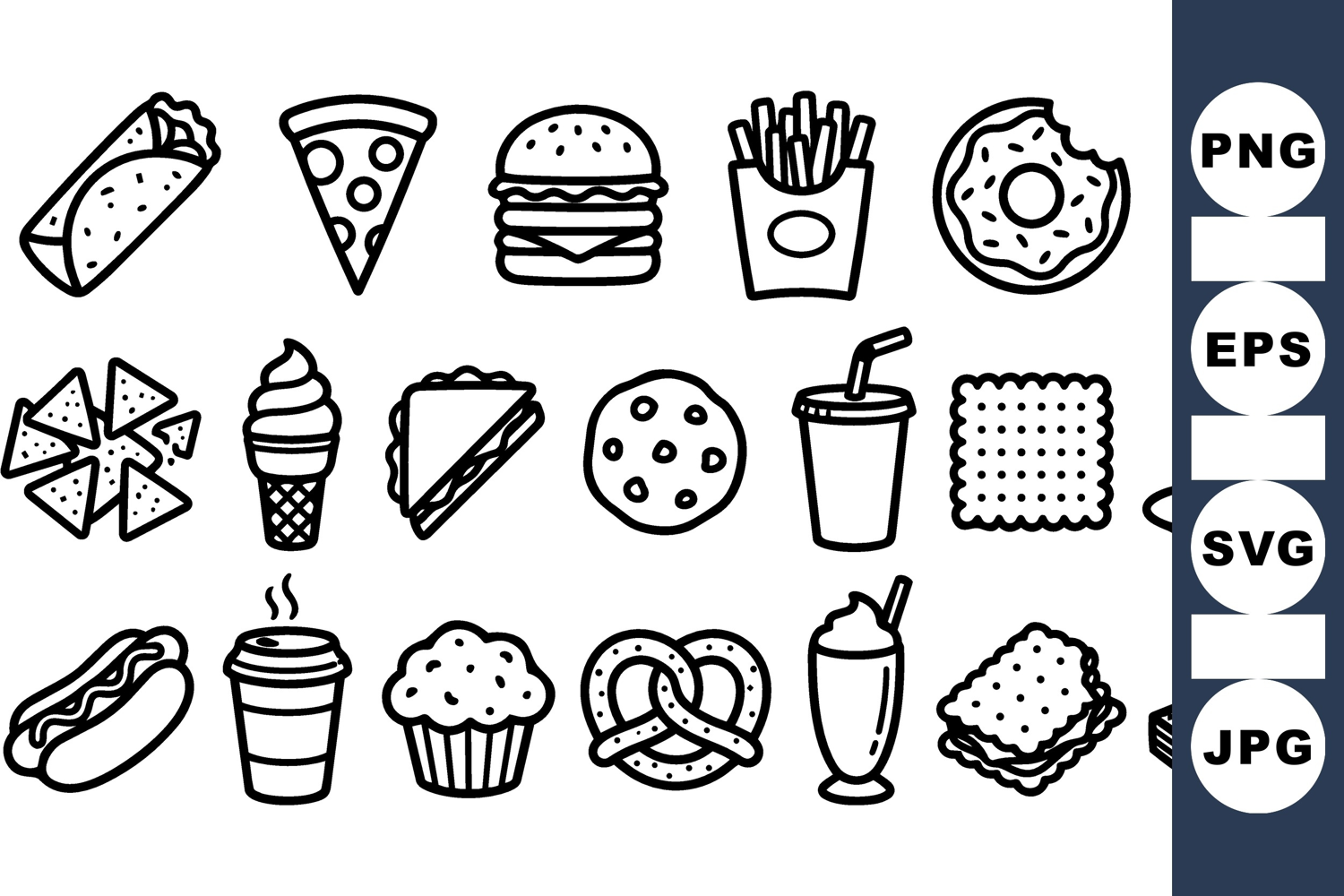 Hand Drawn Icons Dessert Icon Pack Fast Food Clipart Black And White Icons Minimalist Food Icons Restaurant Clipart Set Meal Icon Collection Snack Food Bundle Party Food Graphics Junk Food Illustrations