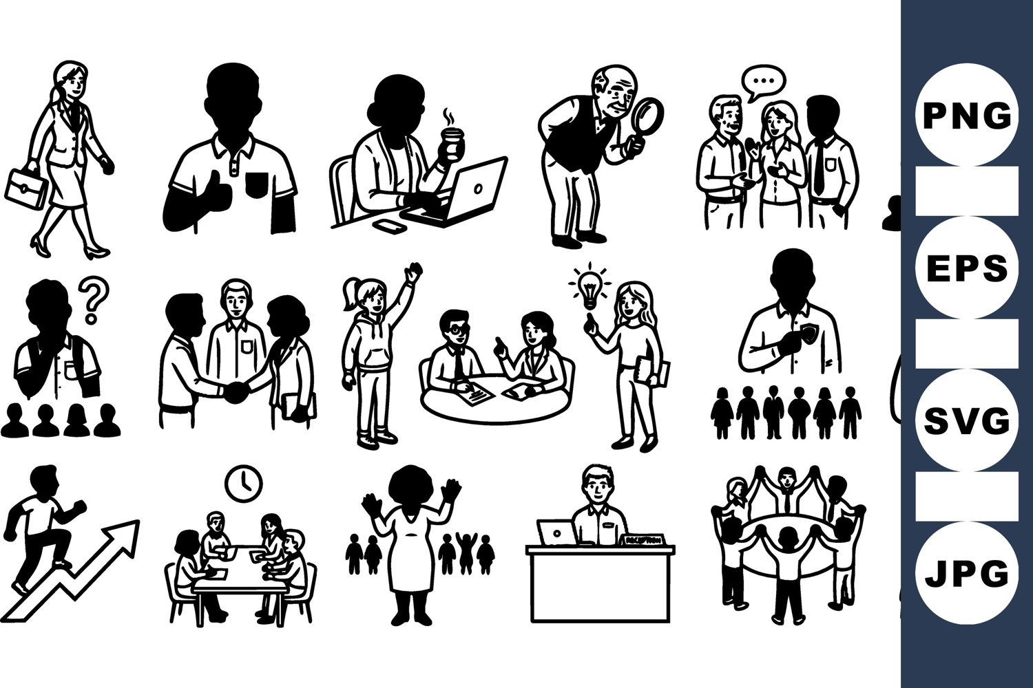 Business People Silhouettes Corporate Communication Icons Business Leadership Clipart Office Team Vector Teamwork Meeting Set Group Discussion Illustrations Professional Work Silhouettes Workplace Collaboration Kit Presentation Meeting Pack Employee Teamwork Graphics
