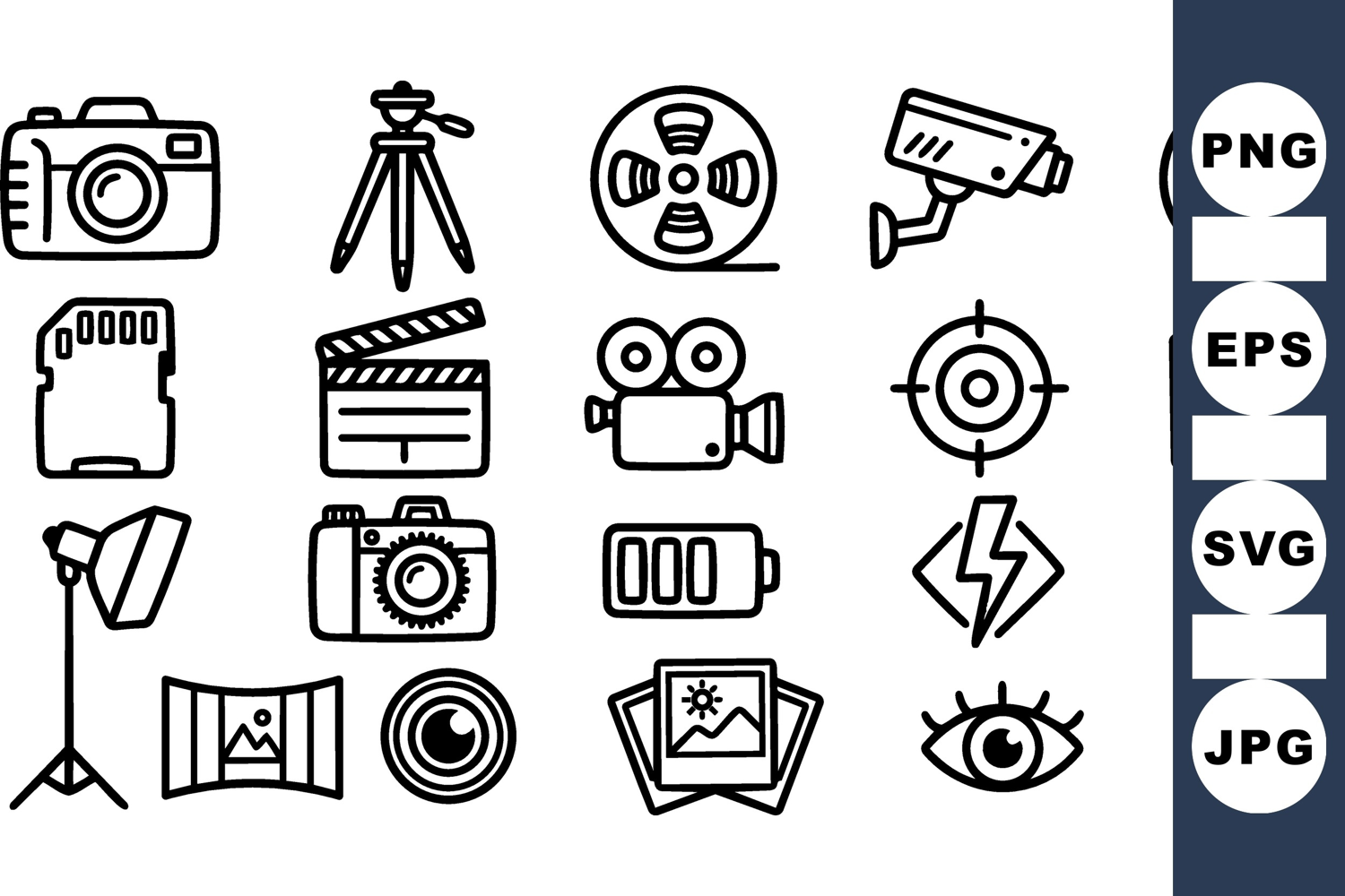Camera Icon Set Film Reel Clipart Video Camera Clipart Security Camera Vector Battery Power Icon Digital Media Icons Photography Icon Pack Studio Lighting Illustration Photo Lens Graphic Sound Volume Symbol