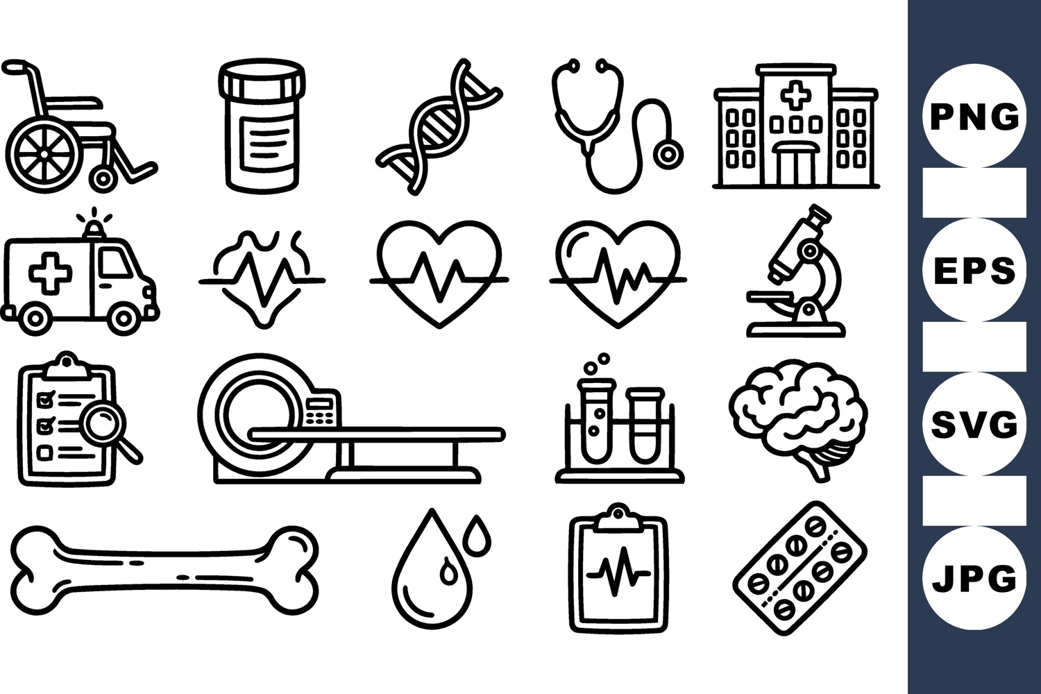 Medical Icon Pack Doctor Nurse Icons Healthcare Icon Set Pulse Heart Icon Brain Anatomy Illustration Ambulance Vehicle Graphic Hospital Building Svg Stethoscope Medical Clipart Dna Helix Vector Nurse Healthcare Design