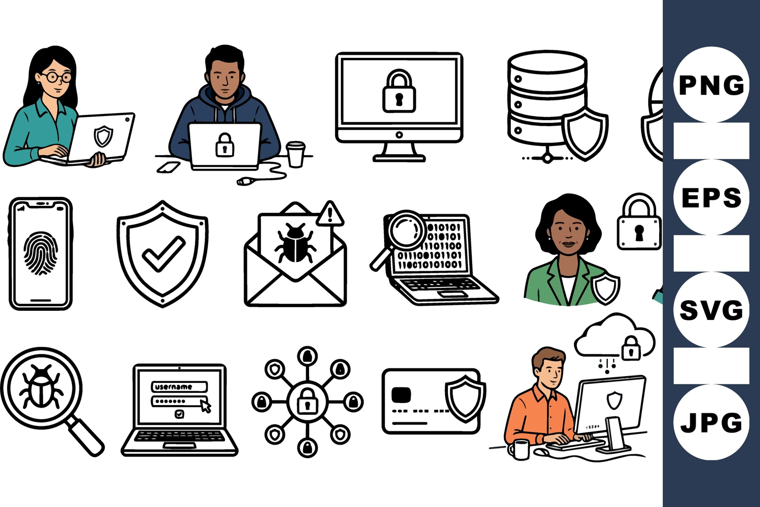 Cybersecurity Icon Vector Set for Digital Protection