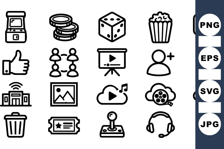 Social Media Symbols Award Badge Design Online Chat Icons Retro Gaming Icons Arcade Game Set Video Streaming Clipart Gaming Controller Bundle Popcorn Snack Graphics Game Ticket Clipart Gaming Headset Icon