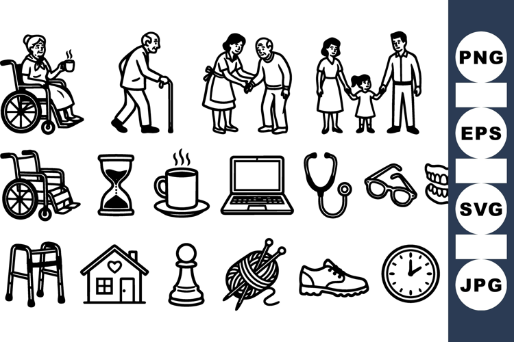 Healthcare Icon Pack Mobility Aid Graphics Elderly Care Icons Senior Health Clipart Family Support Icons Medical Care Set Home Nursing Set Daily Routine Icons Caregiver Clipart Bundle Senior Lifestyle Set