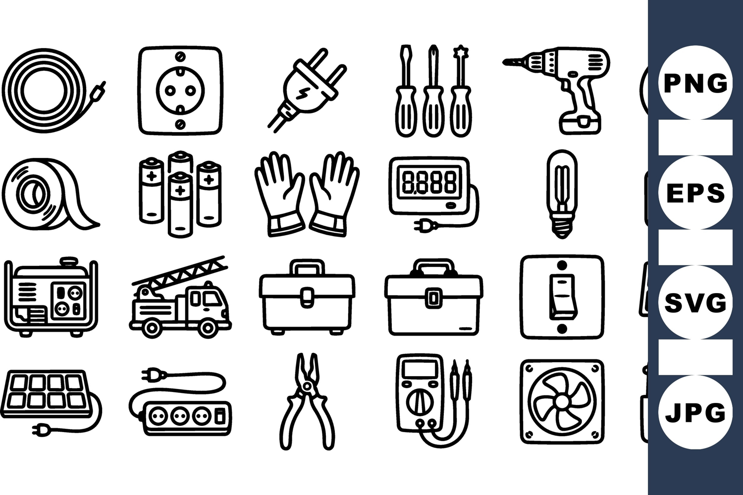 Black Line Icons Vector Tool Bundle Electrical Tools Set Electrician Icon Pack Home Repair Graphics Construction Tools Kit Diy Maintenance Set Technical Workshop Icons Power Equipment Icons Toolbox Vector Set