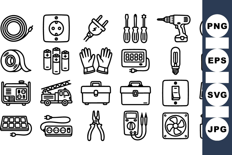 Electrical Tools Icon Vector Set For Crafts example image 1