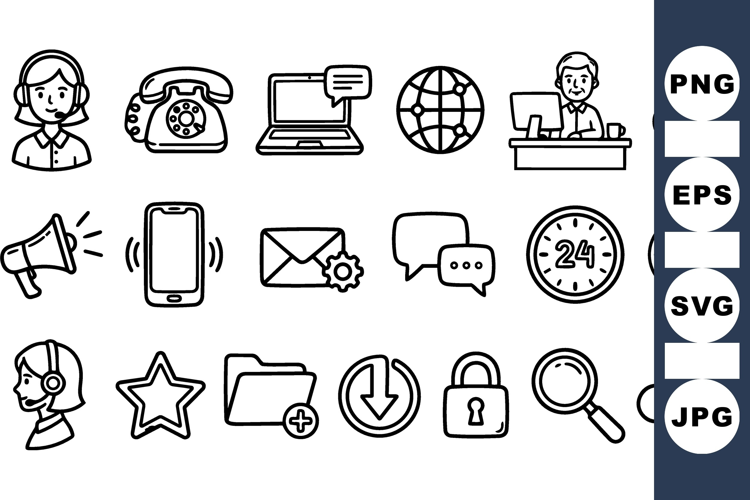 Customer Support Icons Call Center Graphics Technical Support Set Communication Clipart Pack Help Desk Icons Online Chat Symbols Phone Headset Vector Email Notification Graphics Customer Service Bundle Office Support Icons