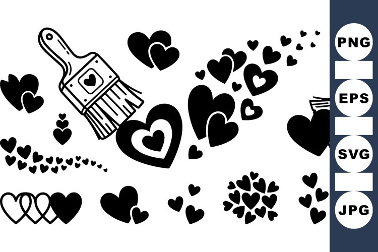 Black And White Art Valentine Love Design Decorative Brush Strokes Digital Craft Clipart Romantic Heart Icons Heart Brush Clipart Paint Stroke Hearts Hand Painted Brush Modern Love Symbols Abstract Heart Bundle