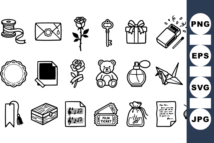 Hand Drawn Icon Gift Box Clipart Wedding Invitation Decor Coffee Cup Icon Paper Craft Bundle Vintage Clipart Set Retro Craft Icons Classic Stationery Graphics Floral Rose Illustration Teddy Bear Drawing