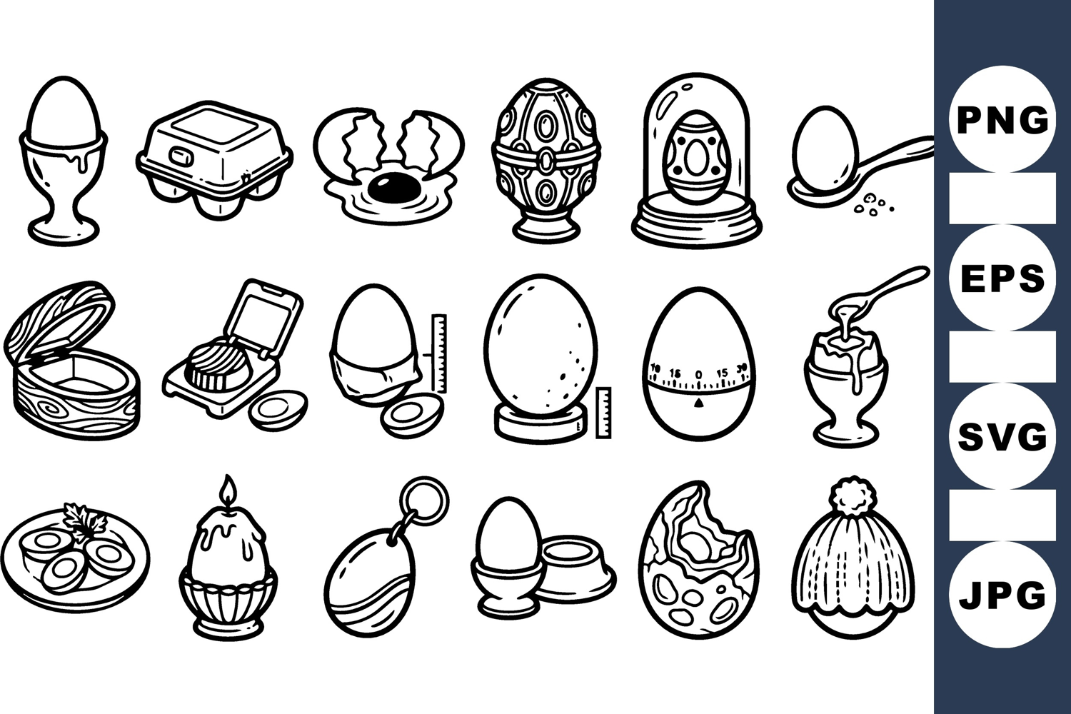Spring Holiday Clipart Easter Egg Set Vintage Egg Clipart Hand Drawn Eggs Kitchen Cooking Design Breakfast Food Bundle Egg Decoration Art Painted Egg Collection Egg Timer Illustration Egg Holder Graphics