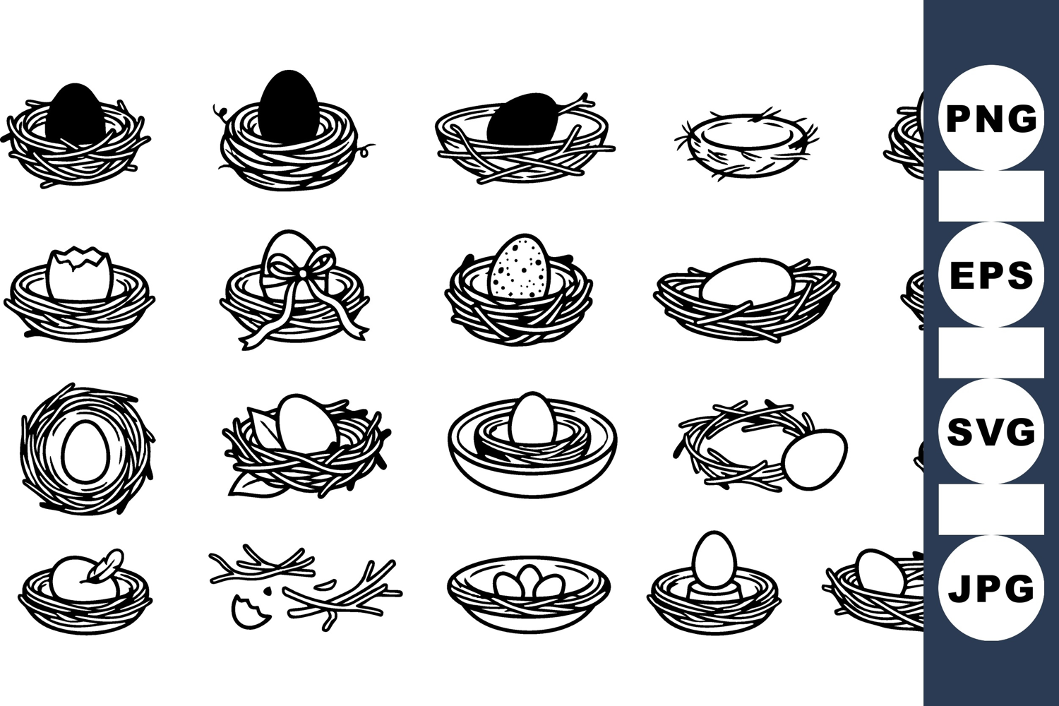 Easter Egg Graphics Line Art Illustration Nature Inspired Clipart Bird Nest Illustration Spring Craft Bundle Simple Black White Hand Drawn Nest Egg Clipart Set Twig Nest Design Wildlife Craft Set