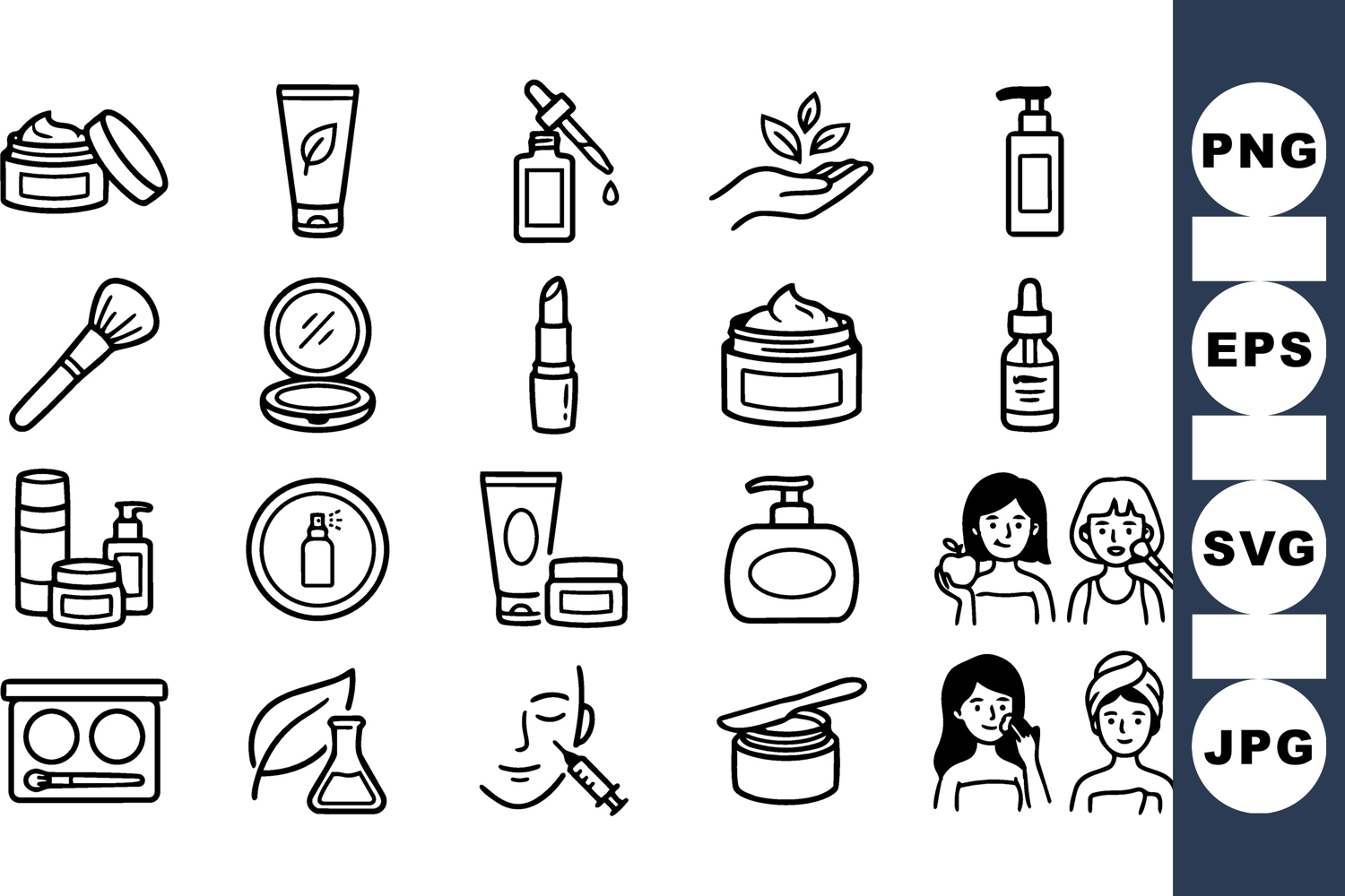 Cosmetic Product Icons Beauty Icon Set Skincare Bottle Clipart Makeup Brush Illustration Facial Treatment Graphics Natural Skincare Bundle Organic Beauty Icons Makeup Application Set Cosmetic Tube Clipart Woman Face Icons