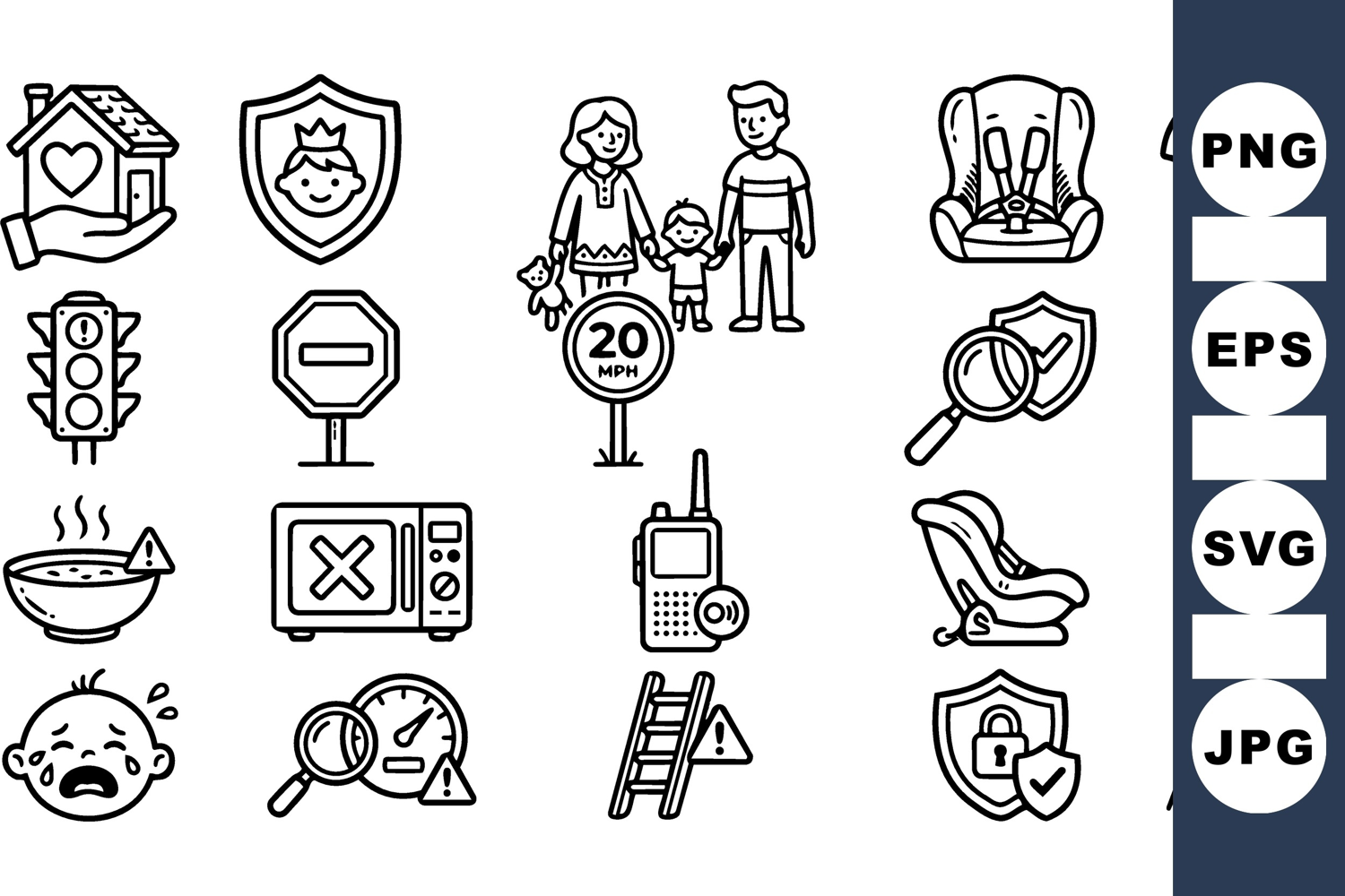 Family Protection Set Warning Sign Graphics Child Safety Icons Baby Care Icons Parent Monitoring Graphics Car Seat Safety Helmet Safety Icons Traffic Safety Set Child Protection Kit Home Safety Graphics