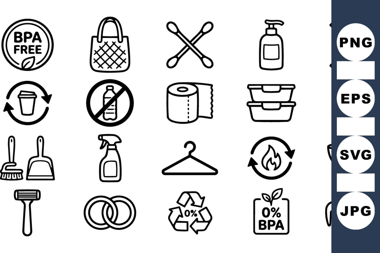 Eco Friendly Icons Zero Waste Icons Household Cleaning Set Bpa Free Symbols Recycle Logo Pack Green Living Icons Sustainable Home Graphics Plastic Free Designs Natural Product Clipart Cleaning Tool Graphics