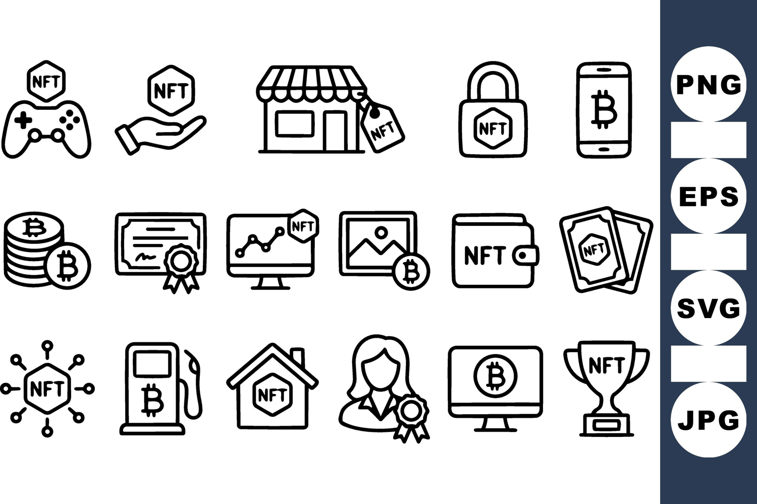 NFT Crypto Icon Set For Digital Blockchain Use