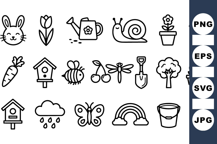 Spring Garden Outline Icons Bundle for Crafts