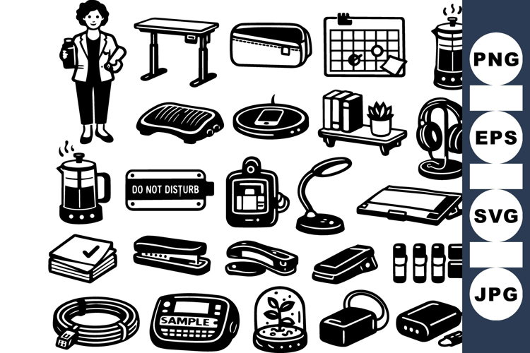 Office Essentials Black Clipart Bundle for Workspaces