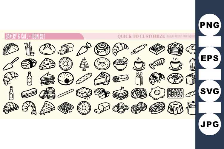 Hand Drawn Bakery And Cafe Icon Set Bundle example image 1