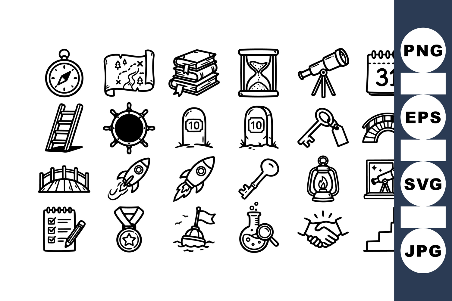 Hand Drawn Clipart Vintage Style Icons Space Exploration Icons Adventure Icon Set Navigation Tool Bundle Planning Checklist Design Achievement Medal Graphic Discovery Theme Set Outline Vector Pack Monochrome Icon Bundle