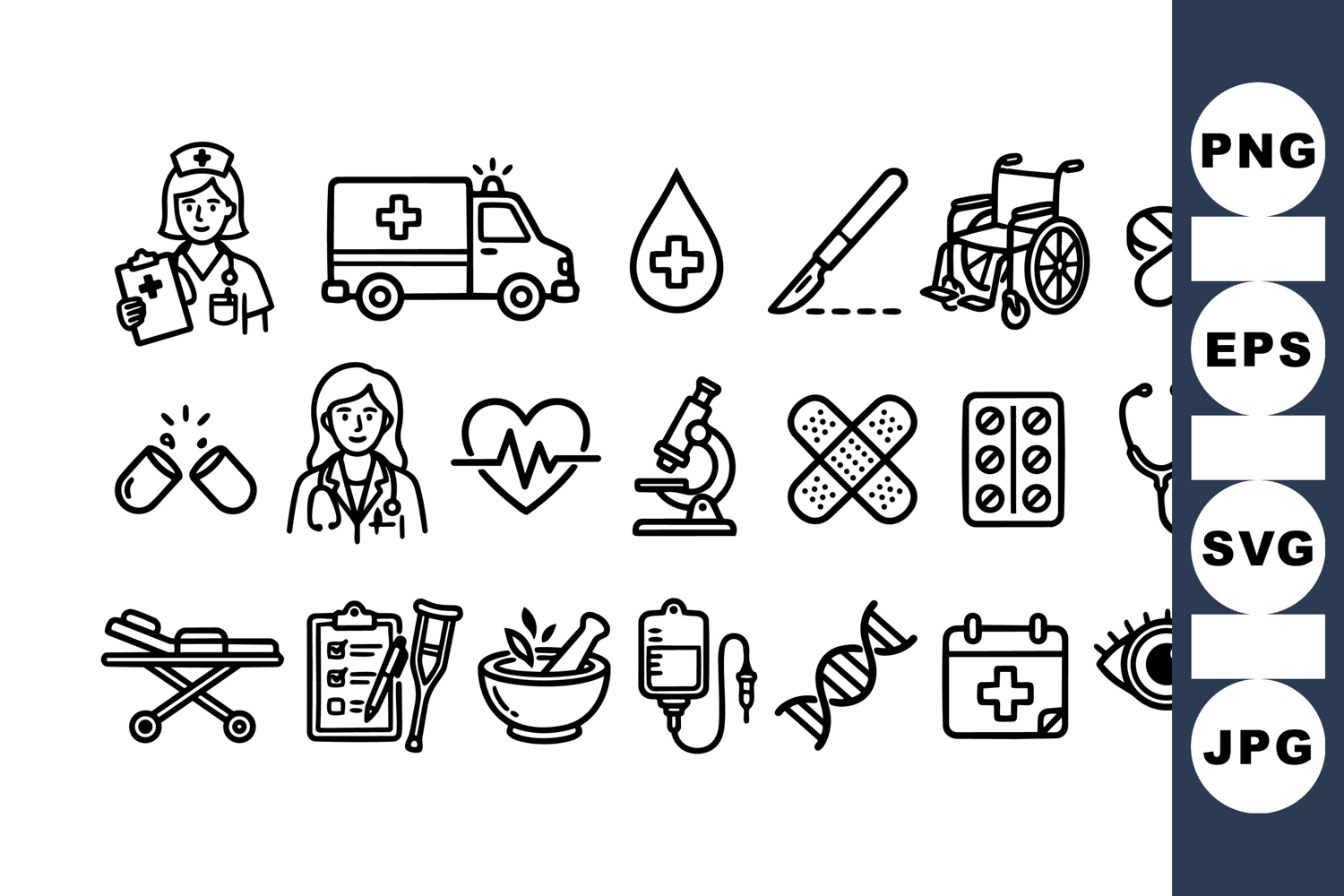 Medical Icon Set Healthcare Svg Bundle Medical Line Art Doctor Nurse Icons Healthcare Vector Pack Hospital Equipment Clipart Clinic Symbol Bundle Emergency Vector Set Medical Supply Icons Healthcare Graphics Pack