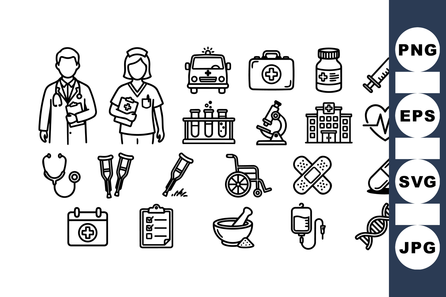 Medical Icon Set Medical Equipment Set Hospital Clipart Bundle Healthcare Vector Pack Emergency Vehicle Icons Healthcare Icon Collection Doctor Nurse Illustrations Patient Care Illustrations Pharmacy Pill Clipart Lab Research Graphics