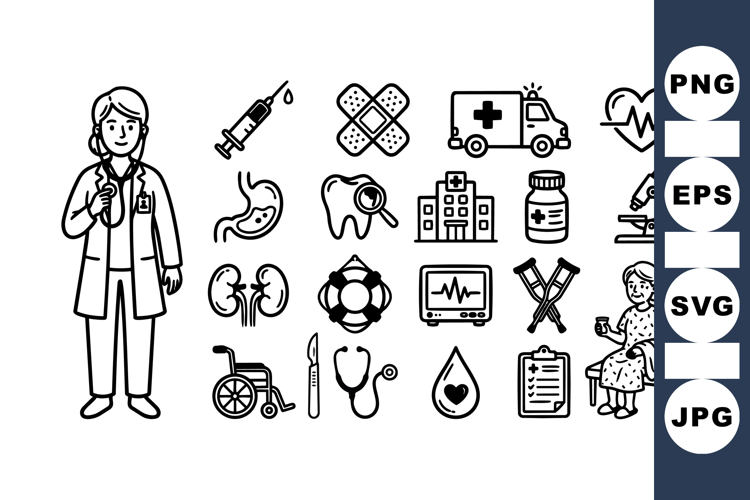 Medical Vector Icons Doctor Nurse Clipart Healthcare Icon Set Patient Care Illustration Medical Equipment Bundle Hospital Building Graphic Wheelchair Accessibility Icon Ambulance Vehicle Symbol Healthcare Tools Pack Clinic Medical Set