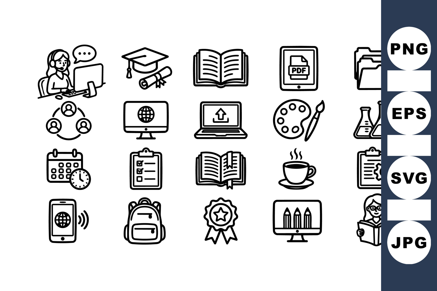 Line Art Education Icons Bundle For Learning Materials example image 1