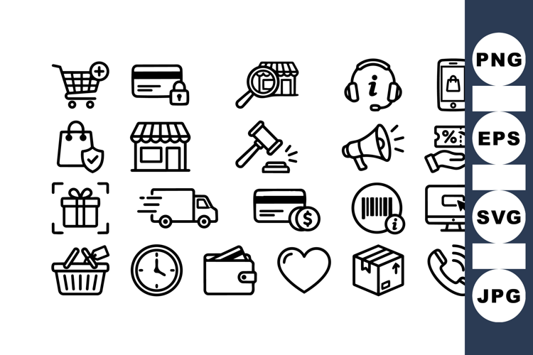 Online Shopping Icons Ecommerce Icon Set Shopping Cart Icons Customer Support Icons Payment Method Icons Delivery Service Icons Package Tracking Icons Discount Coupon Icons Store Management Icons Mobile Shopping Icons