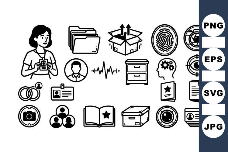 Business Icon Set Office Identity Clipart Id Card Graphics Employee Badge Vectors Document File Icons Fingerprint Scan Icon Team Member Clipart Security Target Symbol Photo Id Illustration Archive Box Vector