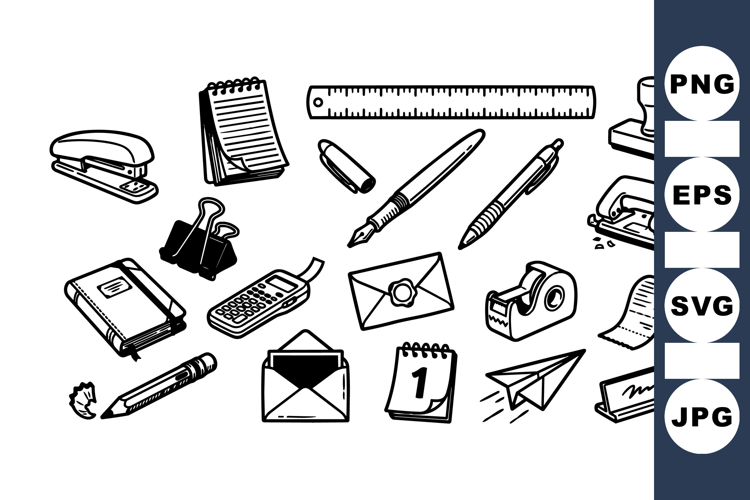 Hand Drawn Office Supply Vector Clipart Bundle Set
