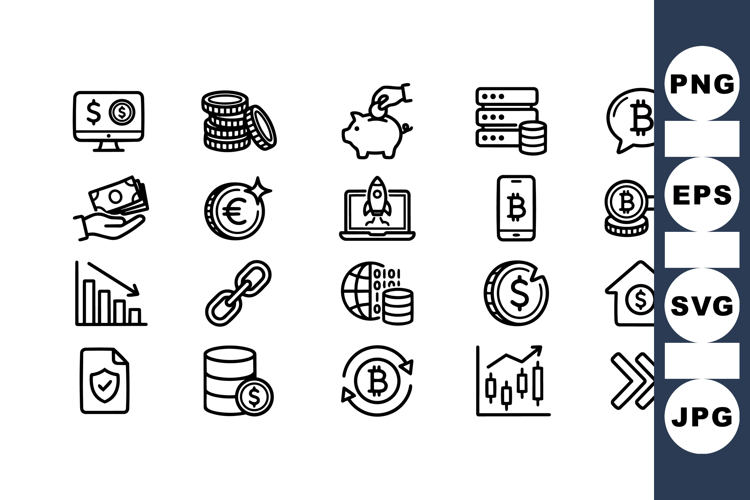 Finance Icon Set Business Icon Pack Financial Growth Icons Investment Icon Pack Cryptocurrency Icon Set Bitcoin Vector Icons Digital Money Icons Stock Market Vectors Cash Flow Illustrations Banking Vector Icons