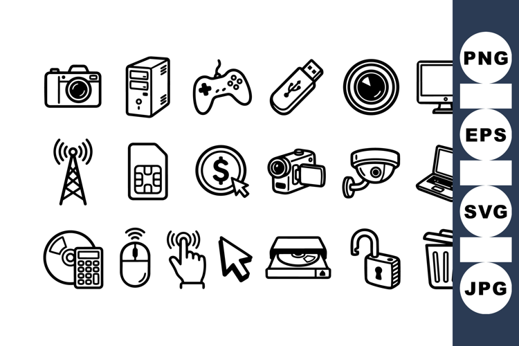 Usb Flash Drive User Interface Icons Video Camera Icon Computer Hardware Icons Technology Icon Set Digital Device Graphics Minimalist Icon Pack Wireless Network Symbols Electronic Device Bundle Security And Unlock