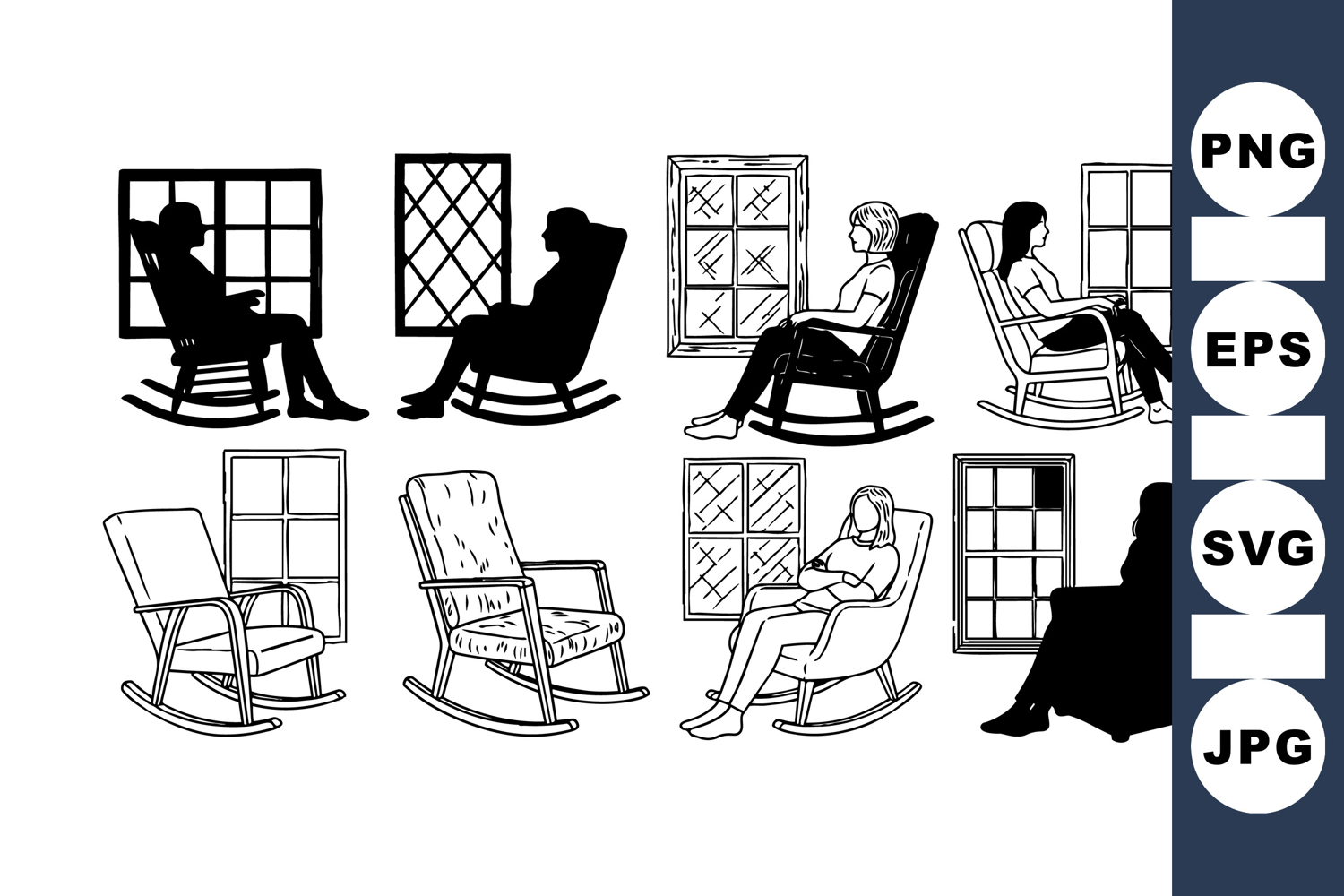 Vintage Rocking Chair Silhouette Clipart Set for Crafts