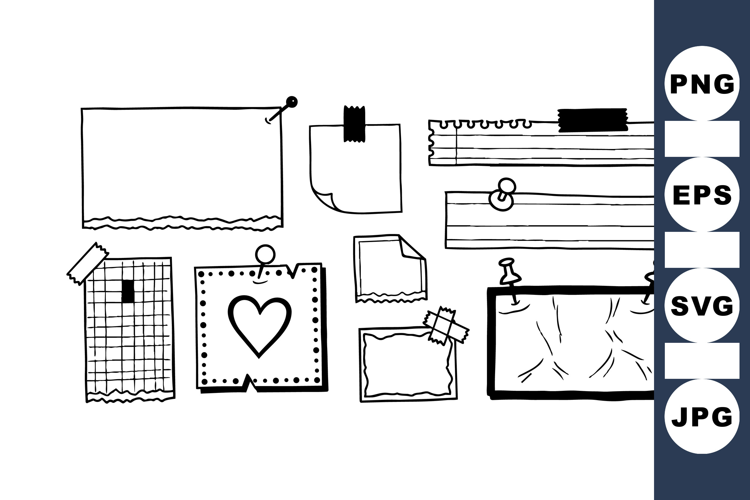 Hand Drawn Frames Lined Paper Clipart Office Stationery Clipart Paper Note Clipart Sketch Frame Set Notepad Border Design Sticky Tape Illustration Scrapbook Paper Decor Doodle Frame Bundle Handmade Frame Kit