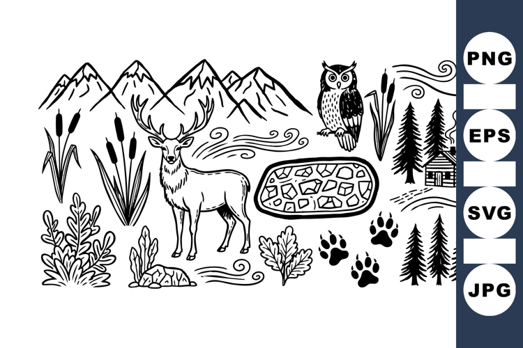 Woodland Animal Clipart Deer Silhouette Clipart Cabin In Woods Rustic Nature Bundle Nature Craft Graphics Forest Wildlife Set Mountain Scenery Design Pine Tree Clipart Pack Owl Vector Artwork Forest Paw Prints