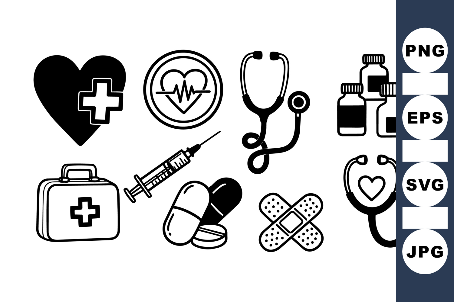 Medical Icon Set First Aid Icons Healthcare Icon Pack Health Symbol Bundle Medicine Bottle Graphics Patient Care Clipart Doctor Symbol Bundle Clinic Tools Set Hospital Design Elements Pharmacy Icon Collection