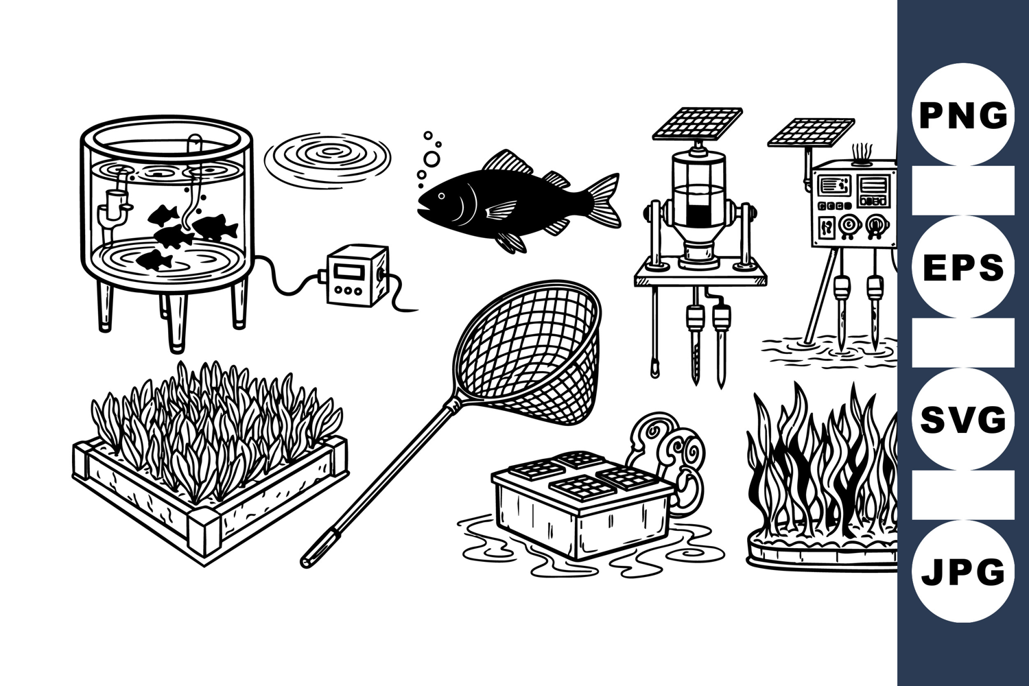 Vintage Aquaculture Illustration Set for Farming Projects example image 1