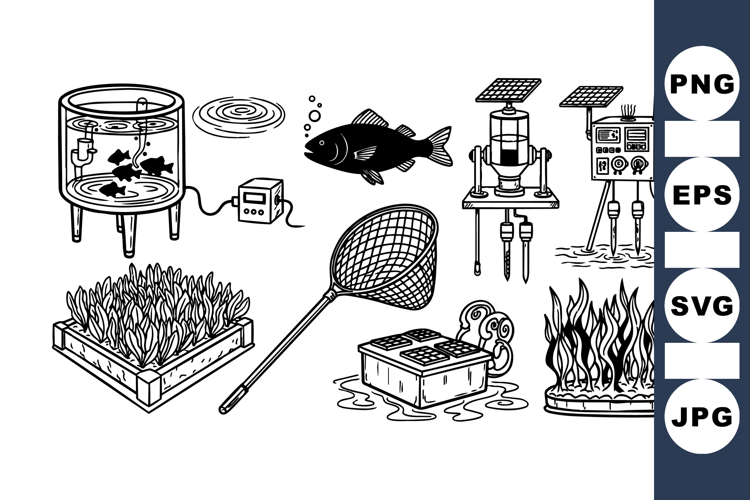 Similar Design Products to Vintage Aquaculture Illustration Set for Farming Projects