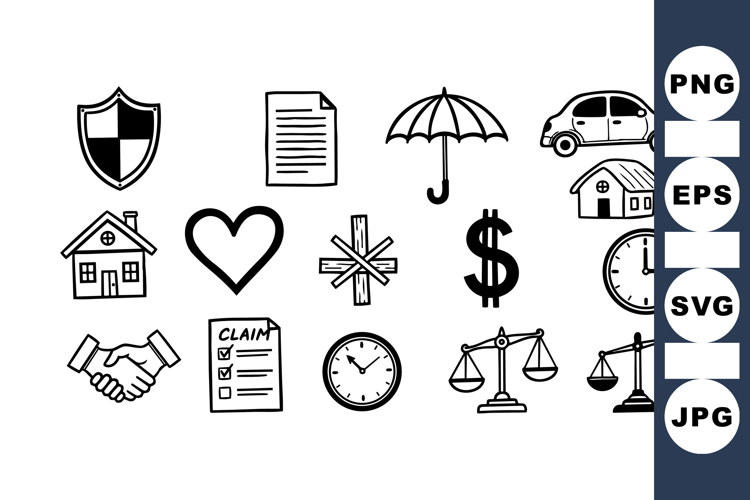 Hand Drawn Icon Business Icon Set Legal Document Icon Time Management Graphic Finance Symbol Pack Legal Scales Illustration Contract Clipart Bundle Office Icons Collection Insurance Claim Icon Hand Drawn Business