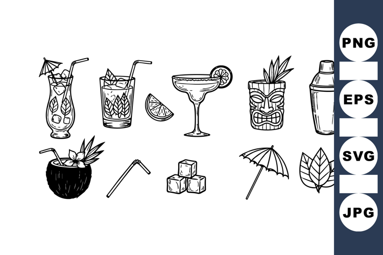 Hand Drawn Clipart Commercial Use Graphics Summer Party Graphics Printable Party Decor Tropical Cocktail Clipart Vintage Cocktail Set Tiki Drink Illustrations Cocktail Invitation Design Bar Menu Artwork Island Themed Bundle