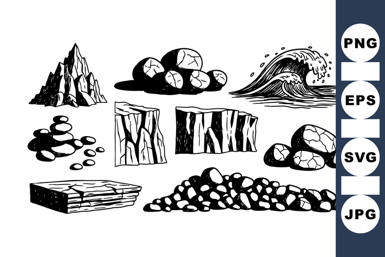 Hand Drawn Rustic Stone and Rock Clipart Bundle
