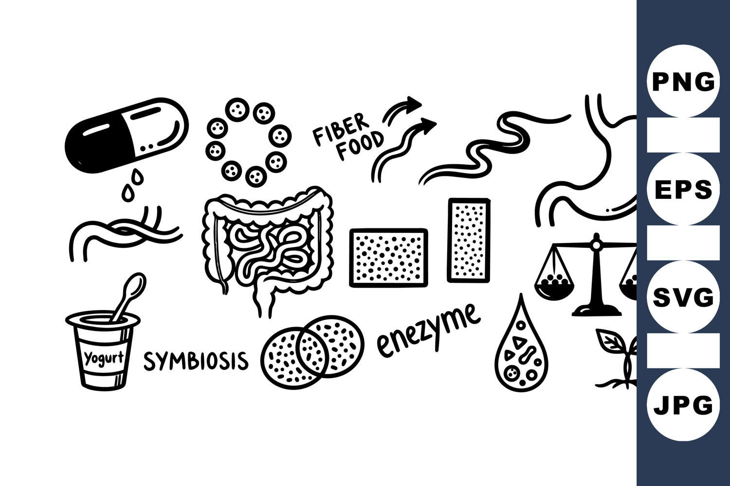 Digestive System Clipart Gut Health Illustration Hand Drawn Health Enzyme Clipart Set Fiber Food Graphics Probiotic Vector Art Anatomy Drawing Bundle Microbiome Design Pack Stomach Illustration Kit Wellness Clipart Collection