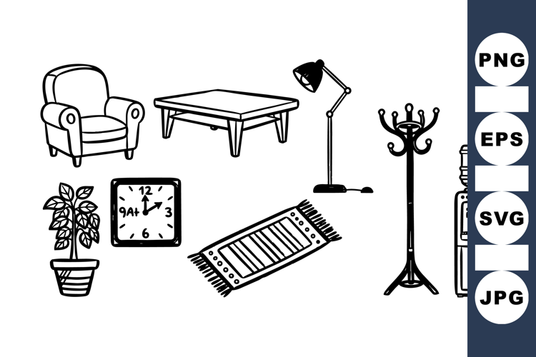 Hand Drawn Vintage Home Decor Clipart Set for Crafts