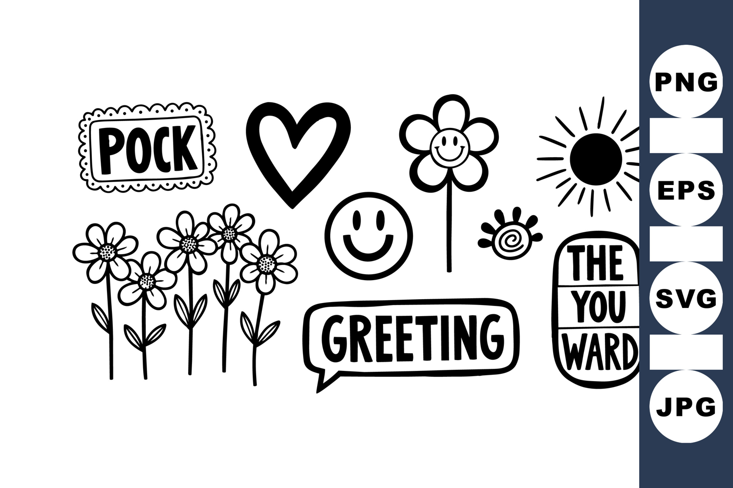 Black And White Hand Drawn Floral Spring Floral Bundle Botanical Line Art Floral Stamp Set Flower Doodle Pack Sketch Flower Clipart Cute Garden Stamps Fun Smiley Designs Handmade Craft Stamps