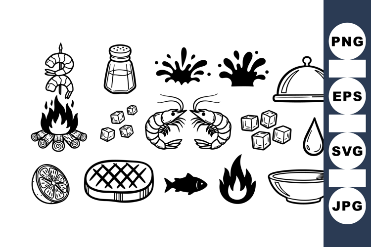Hand Drawn Fishing Salt Shaker Illustration Seafood Clipart Set Black Line Seafood Campfire Cooking Art Outdoor Fishing Bundle Grilled Fish Clipart Shrimp And Lobster Summer Fishing Graphics Fish And Fire Drawing