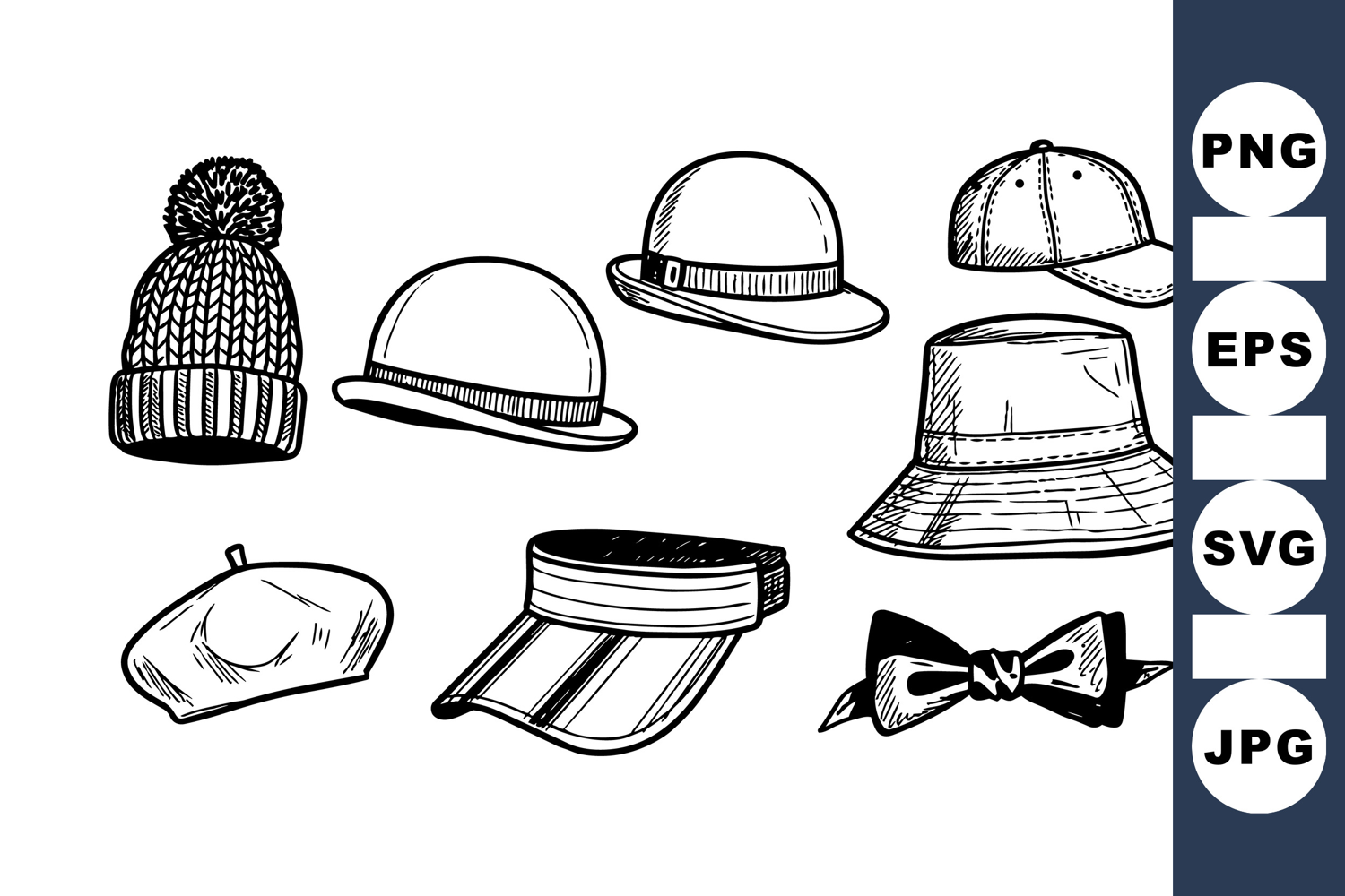 Hand Drawn Hats Vintage Hat Clipart Fashion Accessory Bundle Retro Cap Set Bow Tie Clipart Set Bucket Hat Illustration Headwear Design Pack Casual Hat Graphics Sketch Hat Collection Flat Cap Drawing